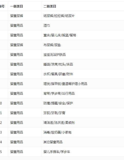 网店类目:母婴用品